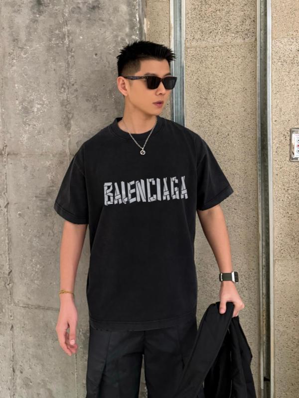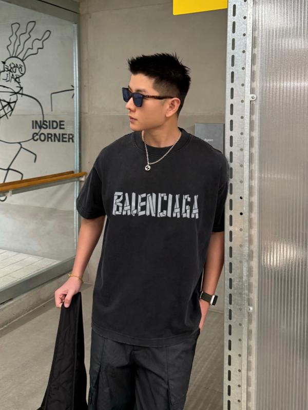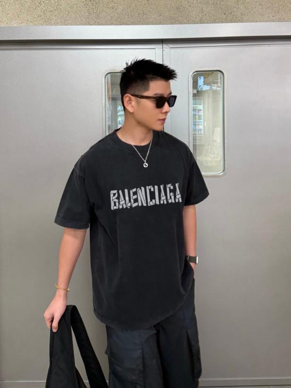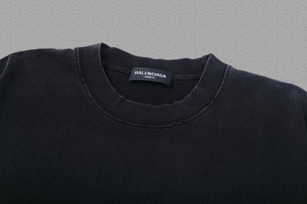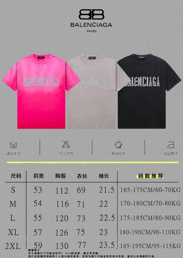 P115✨🔥 【Balenciaga 巴黎世家2025FW 短袖T恤 产品亮点 系列:2025FW(Fall/Winter) 面料:高端 26s双纱300克面料,手感扎实舒适。 工艺:独特的 洗水喷马骝做旧磨破工艺,营造出复古破损的时尚感。 品牌:Balenciaga 巴黎世家 可选颜色 洗水黑 灰色 玫红 尺码范围 S, M, L, XL, 2XL 产品细节图