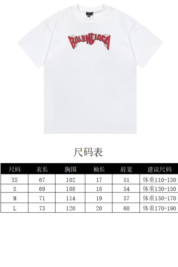 BALENCIAGA 巴黎世家 短袖T恤 【隔天到 BALENCIAGA 巴黎世家 精致升级官方同款短袖T恤,带来春夏最新版本。 设计与面料 设计特色:结合立体字母刺绣与Logo标识印花,工艺精致。 面料升级:采用原版面料,定制260克同缸染面料,手感非常舒服。 款式信息 颜色:白色 尺码:XS~L 实拍展示