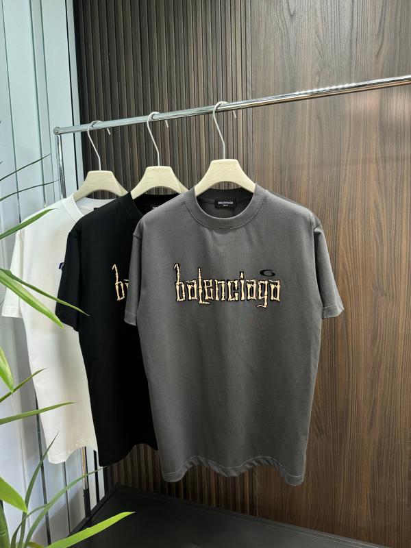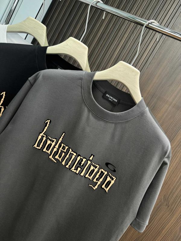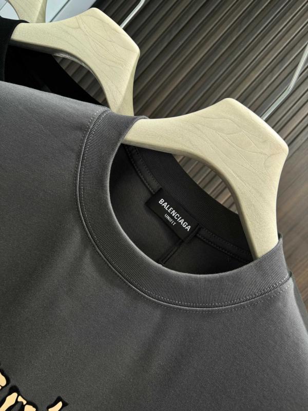 💎 Balenciaga 2025SS 秋冬新款短袖 这款 Balenciaga 2025SS 秋冬新款短袖,采用全棉平纹面料打造,经过洗水定型工艺处理。细节上,运用了磨破工艺和前胸logo工艺,展现出高品质和独特的风格。 面料手感柔软,为定制面料,做工精细,确保了穿着的舒适度和产品的耐用性。此款为男女同款,提供多种尺码和颜色选择: 👕 尺码与颜色 尺码: S / M / L / XL / XXL 颜色: 黑色 / 白色 / 灰色 📸 产品细节图
