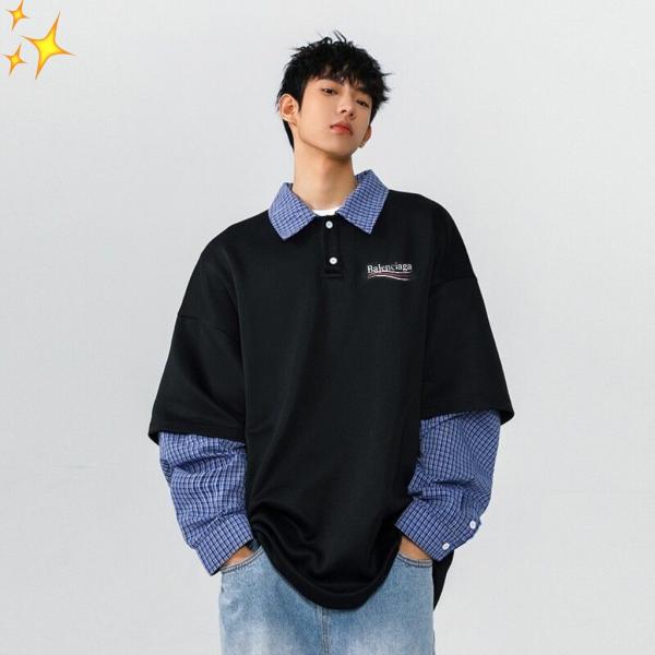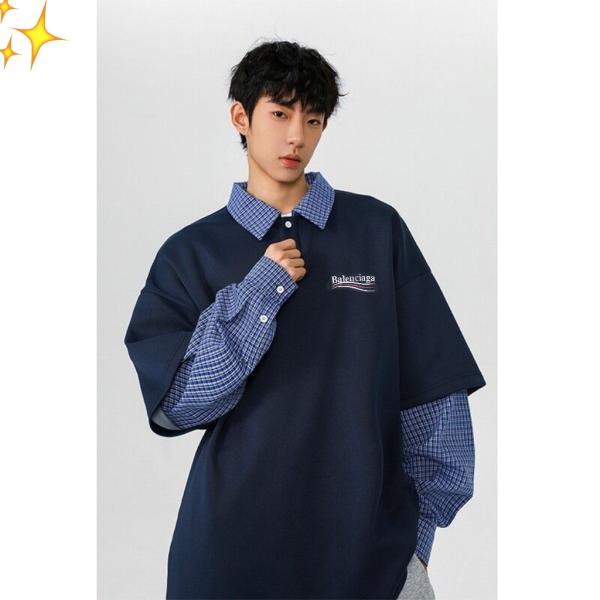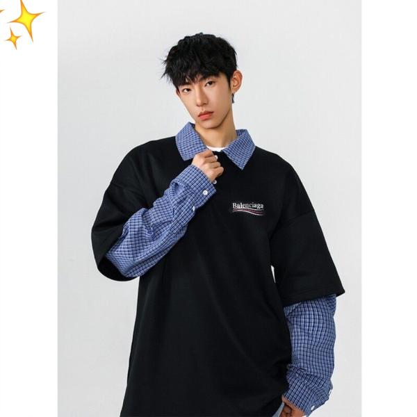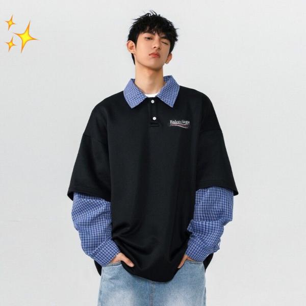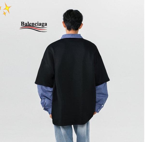 巴黎世家家Balenciaga Bootcut 2025春大码假两件亨利领美式拼接格子卫衣,男女同款。这款春季海外新款质感特赞,情侣款设计,男神女神均可上身!