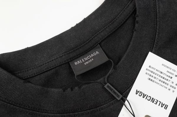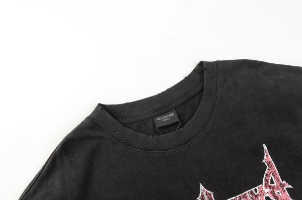 新款 Balenciaga/巴黎世家 2023SS 铁塔磨破喷墨涂鸦印花短袖 这款 Balenciga/巴黎世家 2023SS 新款短袖以铁塔磨破喷墨涂鸦印花为设计亮点,潮流感十足。 工艺与面料细节 印花技术:采用标准的康丽直喷数码技术和数码渐变印花技术,结合超精细平网印花工艺,确保图案的精细和色彩的层次感。 面料:选用纯棉柔软面料,克重 300g,舒适亲肤。面料经过对色定染处理,颜色为独特的洗水黑。 版型:OS版型(Oversized),宽松休闲,男女同款。 标识:三标齐全。 产品规格 尺码: XS S M L 颜色: 洗水黑