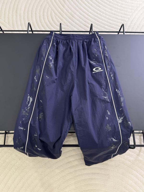 - 系列与款式: Balenciaga / 巴黎世家 25SS 涂鸦喷漆藏青半环刺绣运动长裤,与官网同步发售。