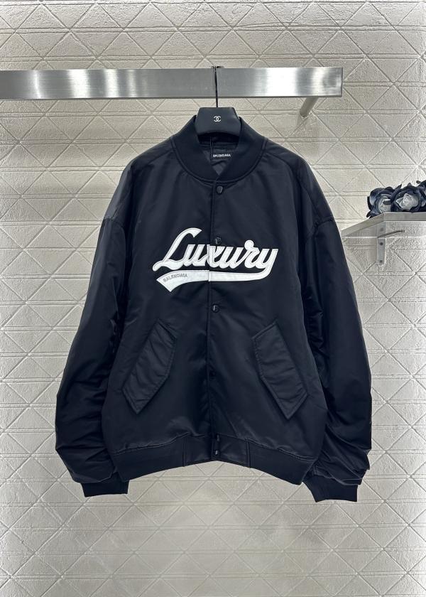 ♥Balenciag*♥2025 新品上架 字母徽标棉服外套 这款 Balenciaga 2025 新品外套采用定制YB进口防风防水尼龙材质,带来高级质感,品相十足。它以经典的棒球服外套剪裁呈现,通体黑色打底,弹力螺纹收窄包边设计,能紧贴身躯,更显利落身形。 细节方面,开襟胸口处的字母徽标充满艺术感。内里衔棉填充,提供足够的保暖度。设计有对称翻盖口袋,兼顾实用性与美观。 整体风格低调时髦,调性十足,不费力就能穿出高级时髦感。 定制面辅料,认准高版本。尺码:S M L。